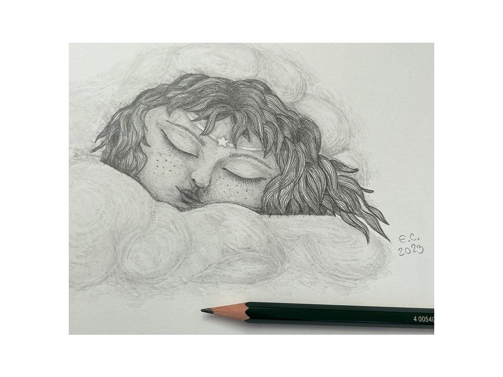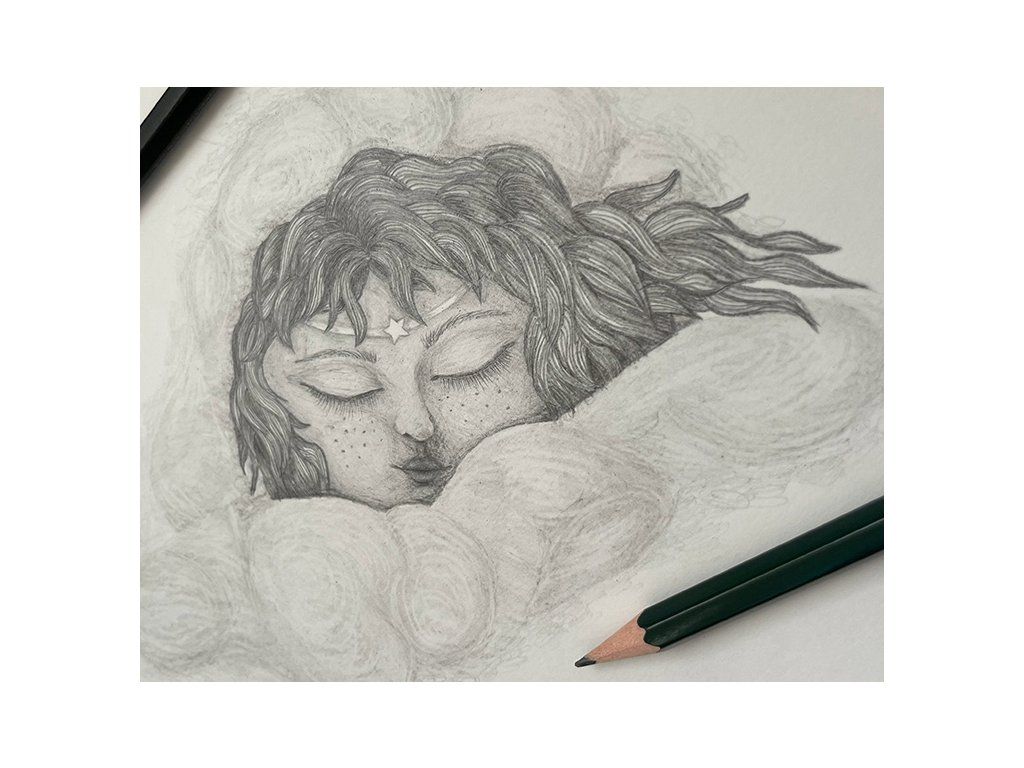 Do této kresby jsem ukryla myšlenku o tom, že i přes všechen neustálý shon a tlak na výkon je důležité nezapomínat na sebe. Být k sobě vlídná, laskavá a jemná.